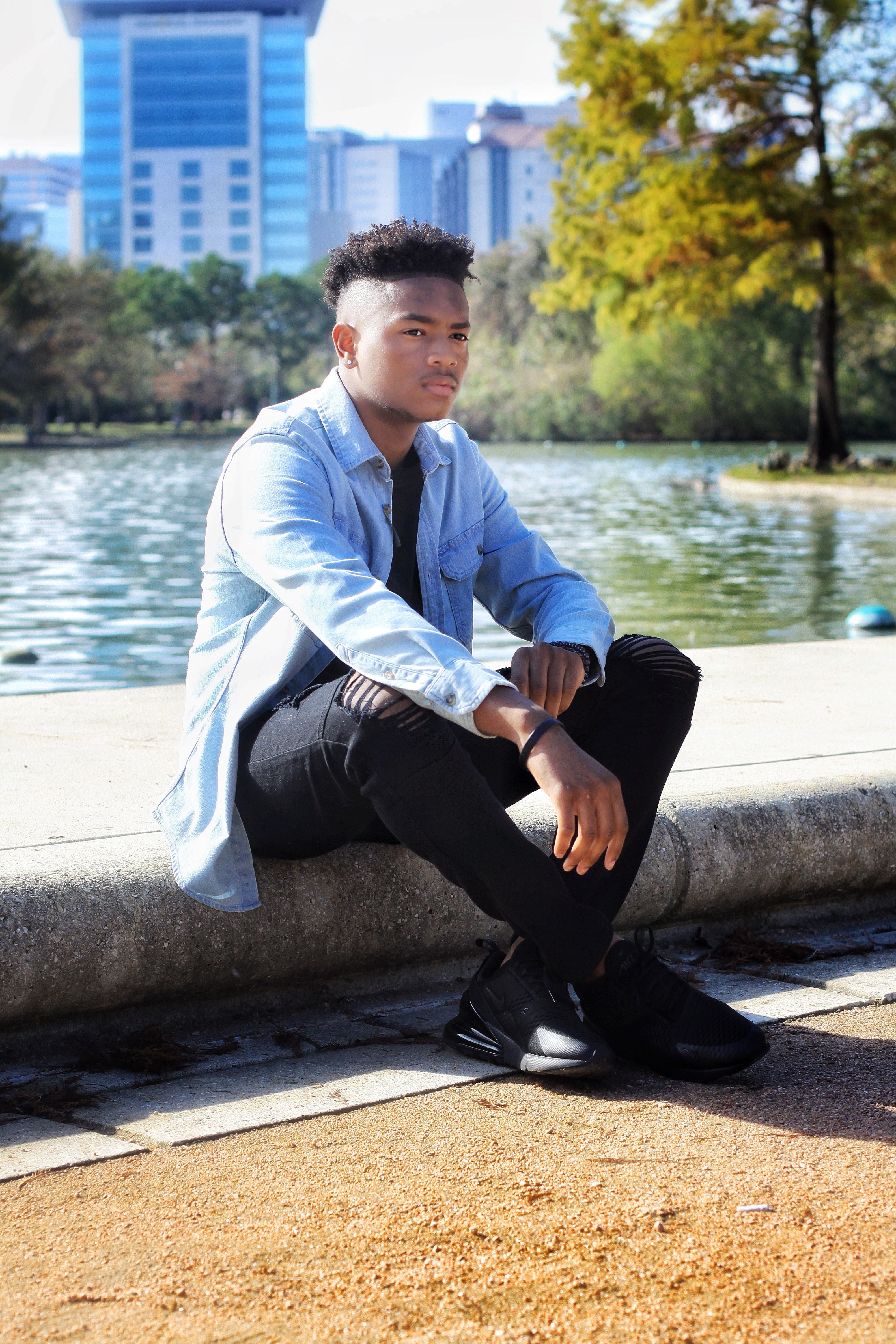 Benjamin came already ready with his first outfit, which was black jeans, a black shirt and a blue Jean long sleeve button down shirt over it opened up so that you can see the black shirt. I explained pretty much how the shoot was going to go and how we were going to start in one location and then end up at the last spot to finish off the shoot. His mom went to the car to get the rest of his things while we walked and went to the first location to start the shoot. We started off just me testing my camera, and then just got into the shoot. I have to say that Benjamin was not shy at all.