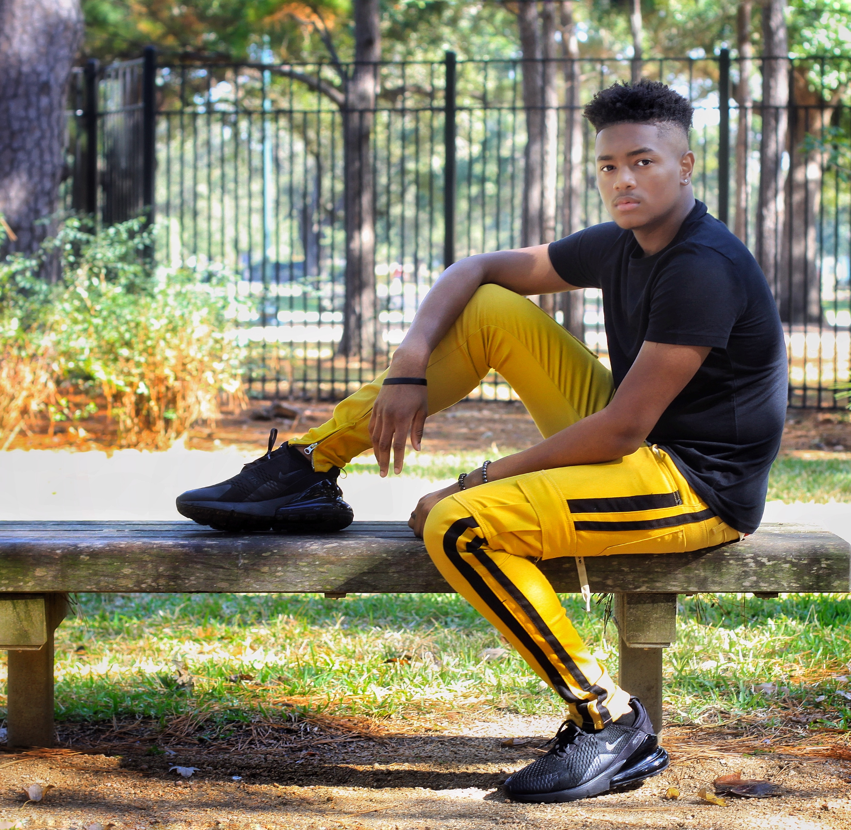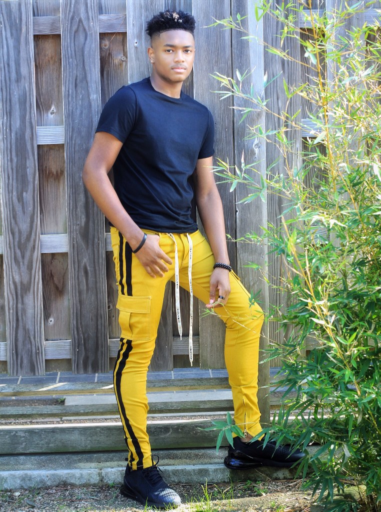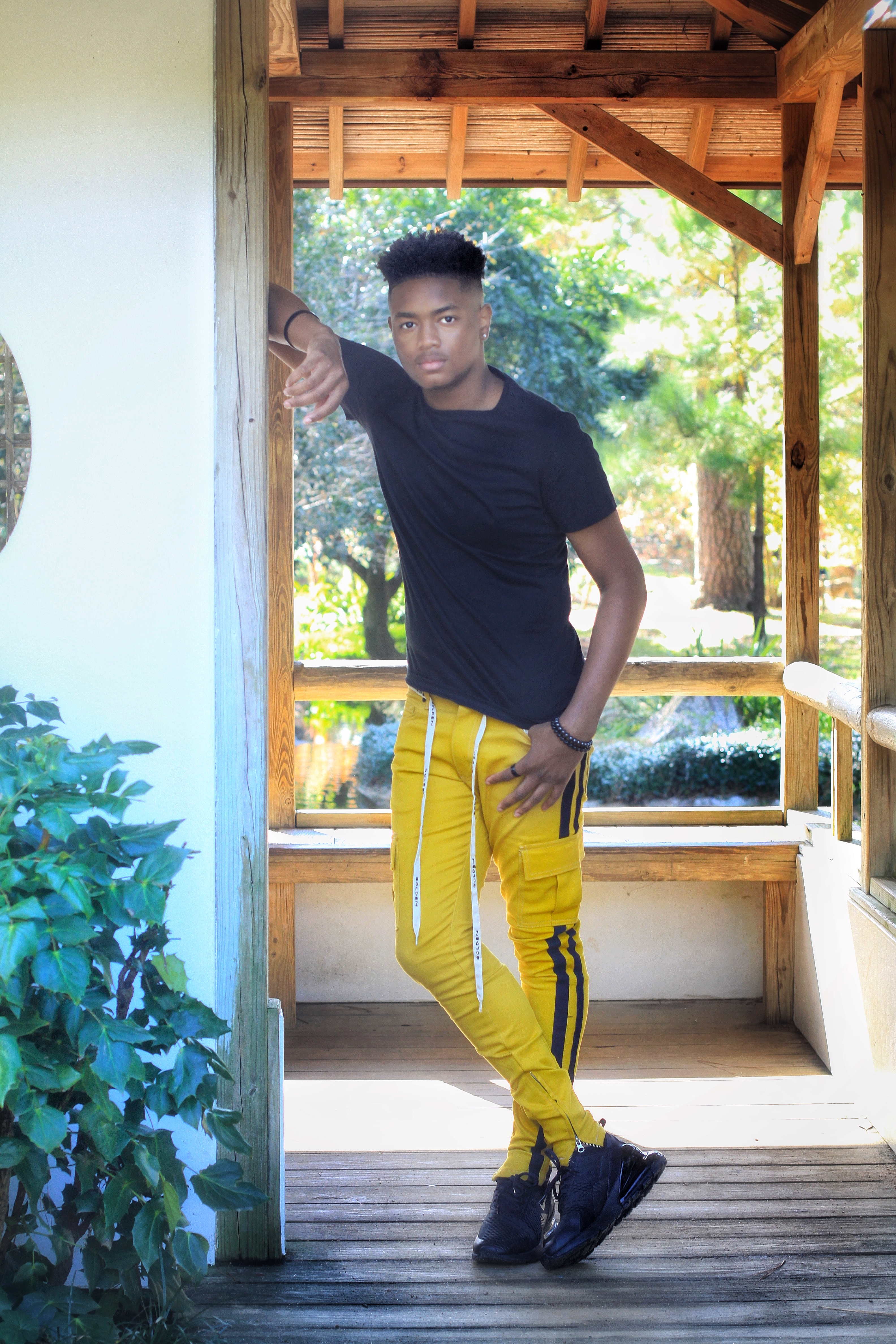 After we wrapped up the first part of the shoot with Benjamin’s first outfit, we moved on to the next location and I had him change into the next outfit. He even asked me which top to wear with the pants he choose. I loved the color of his pants because they were a mustard colored yellow with black strips and then a black shirt. The pants really popped on him and worked perfect with the lighting we had.