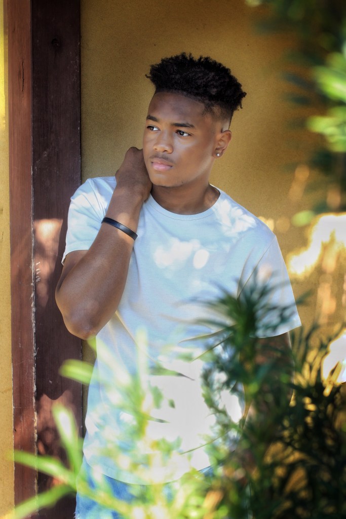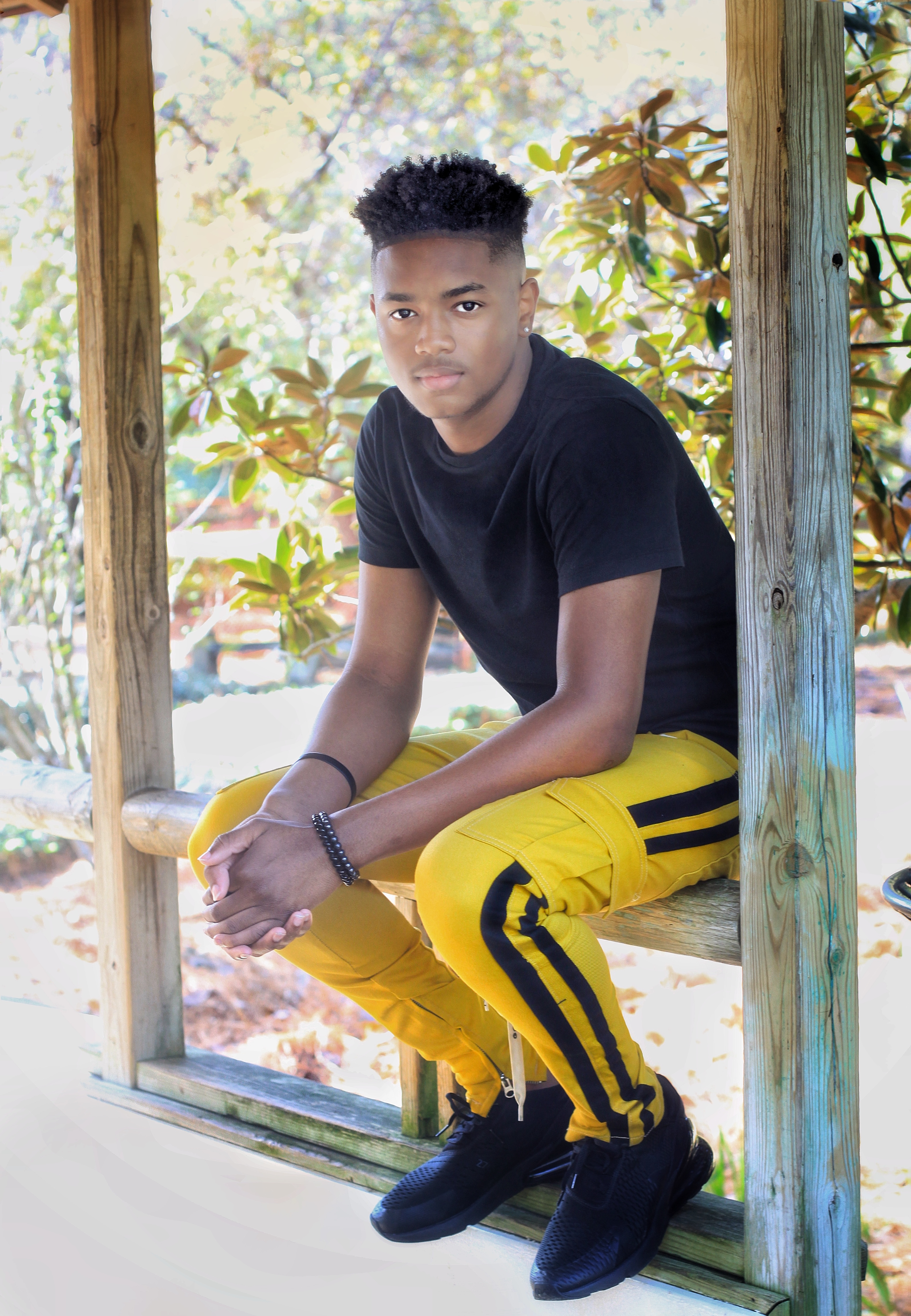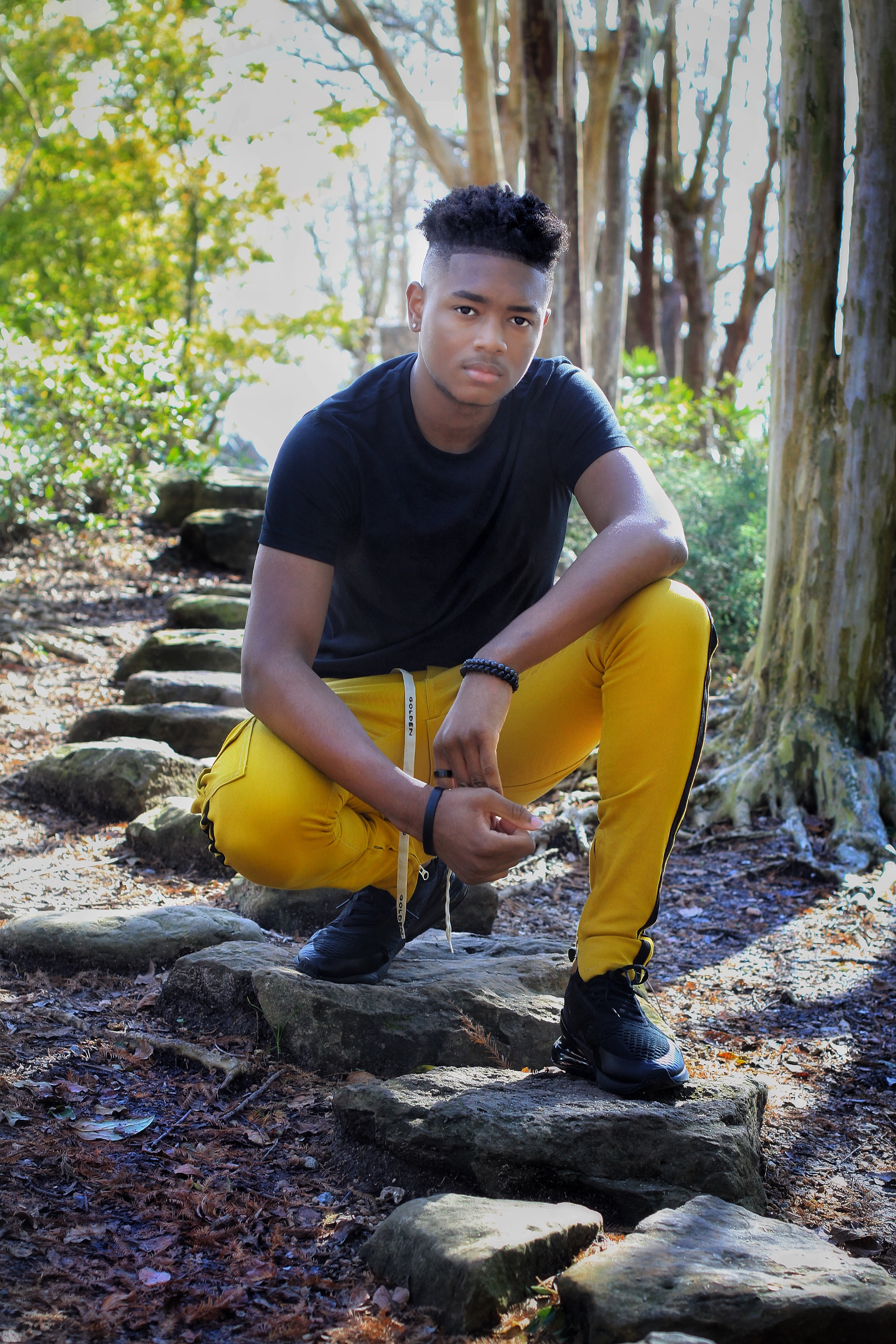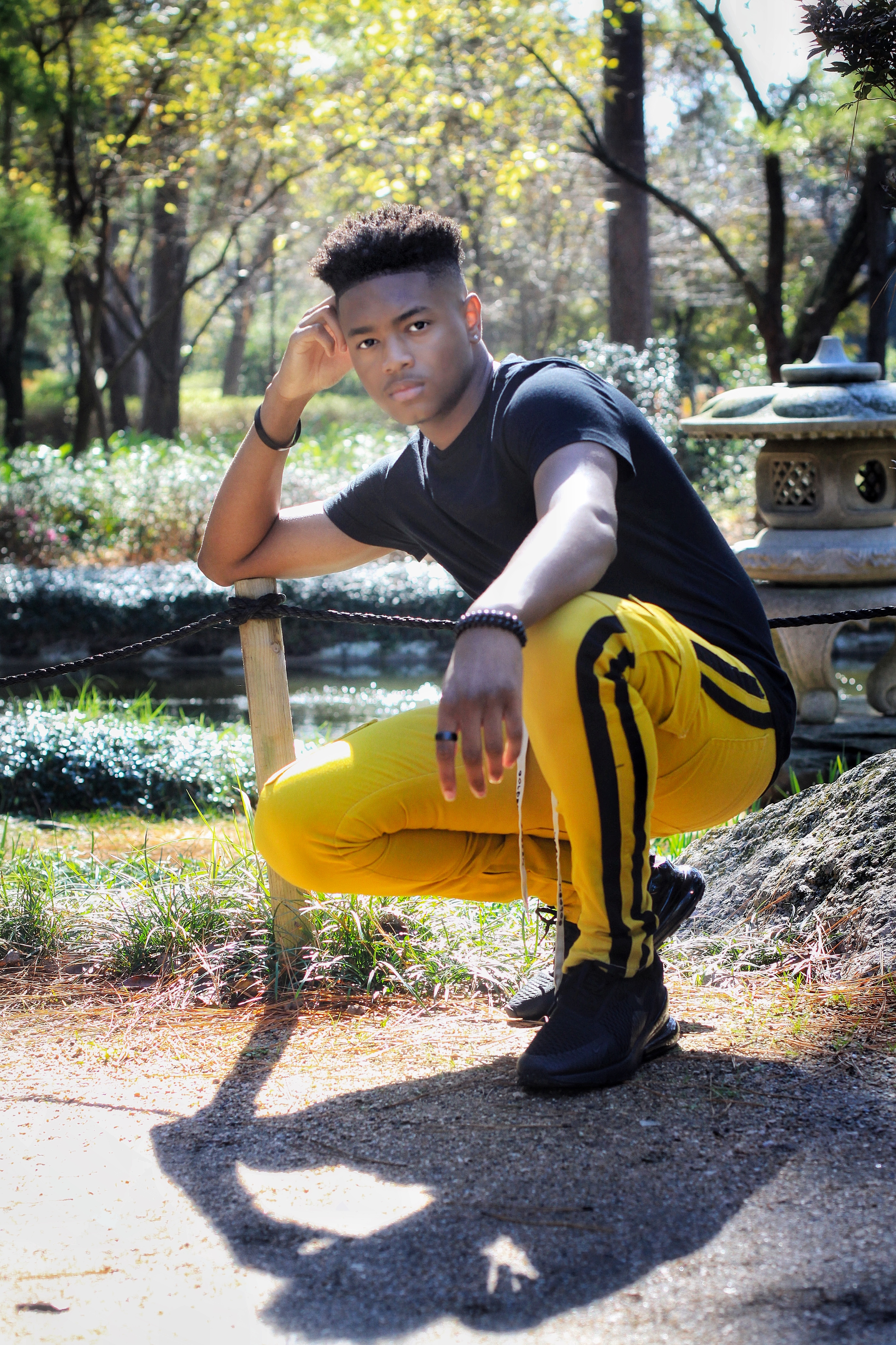 After we wrapped up the first part of the shoot with Benjamin’s first outfit, we moved on to the next location and I had him change into the next outfit. He even asked me which top to wear with the pants he choose. I loved the color of his pants because they were a mustard colored yellow with black strips and then a black shirt. The pants really popped on him and worked perfect with the lighting we had.