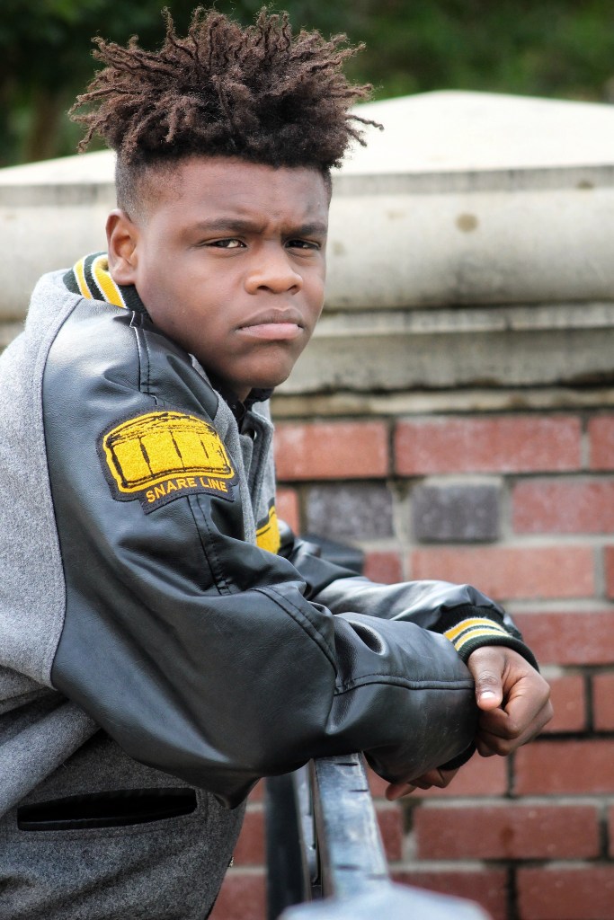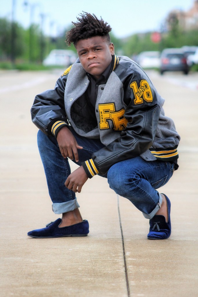 Cameron started off with a black button down shirt and some jeans with these fancy blue shoes and added his Leatherman jacket ads well. We took a few shots in that location and then moved on to the next location which was in the same neighborhood but around the corner. When we got there we played around with the location and got some shots and then it started to rain a little, but more like a mist, so while we had the chance I added my niece and my youngest nephew in some of the pictures of them all just having some fun.