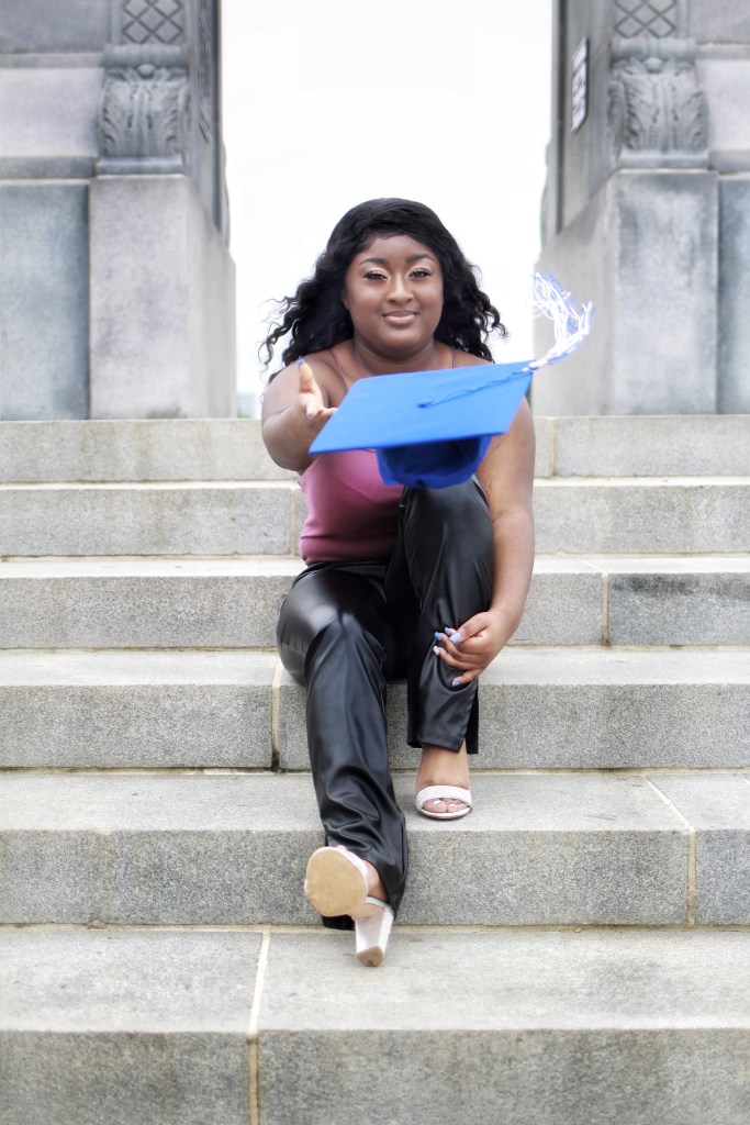 The cap and gown portion of her session was a lot of fun, and I say that because it was “throw your gown over your shoulder and hold your hat like this” which gave for a lot of different poses with her cap and gown and some great images to say.